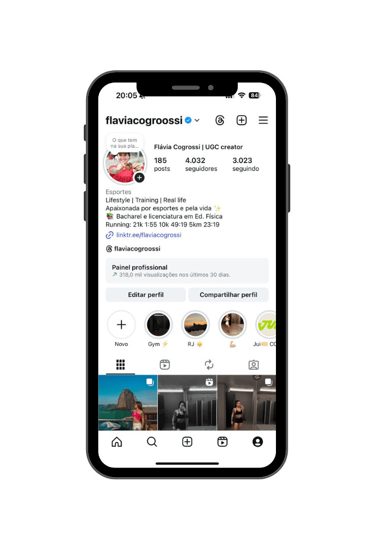 UGC com contexto: Seu produto inserido numa rotina ativa, sem roteiros forçados, só aquilo que faz sentido pra mim, e por isso, pra quem me acompanha também.